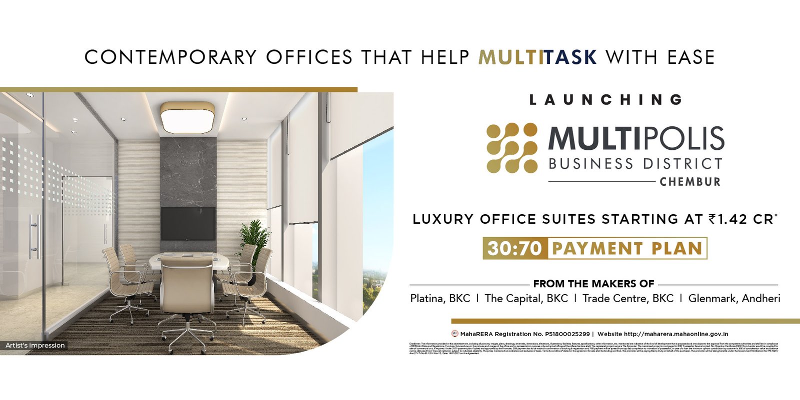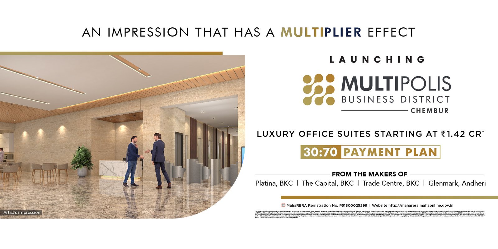 The creators of marquee commercial projects in BKC, THE WADHWA GROUP, now comes to Chembur with Luxury Office Suites at Multipolis Business District. Best known in the city for its multi-modal connectivity planned & designed to offer you multi-dimensional facilities & several opportunities for a well-balanced lifestyle. Multipolis Business District truly boasts of a multi-bagger ROI, giving your business the cutting edge it deserves.